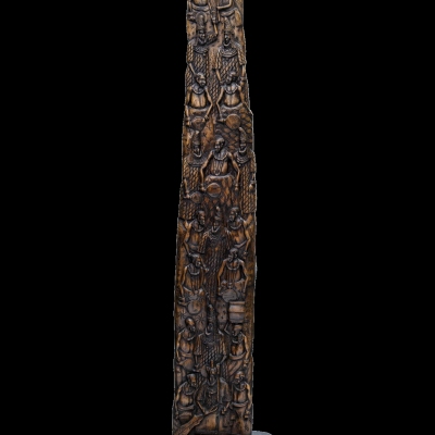 Wood is a living medium, and through these intricate relief carvings, I aim to carve our oral histories and ancestral lineage into a tangible form. The vertical ascent of the figures mirrors the continuity of our heritage—from the foundational roots of our culture to the exalted height of the Oba. I invite viewers to explore the harmony and interconnectedness celebrating that share we share.